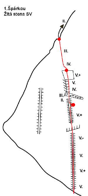 | 13. Petríkova cesta (RP5+, V+,A1) 6h. | Schéma | | ☆☆☆ |